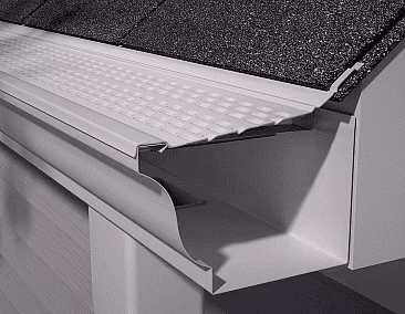 Perforated aluminum gutter protection. Excellent deflector of pine needles and leaves. Low profile on gutter, handles the downpours, will not blow off and its maintenance free! Price per box: 25 sections 4’ long (100’ per box)
