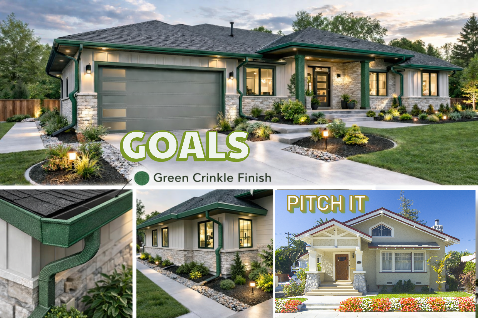 The Green Crinkle Coat Gutter Coil is constructed from .032 aluminum and available in 6″ widths. The crinkle coat finish delivers a distinctive textured, premium look increasingly requested on custom builds, cabins, and homes with natural or wooded surroundings.